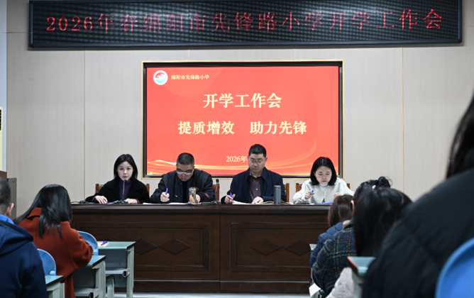 绵阳新闻网讯 为了确保新学期各项工作平稳有序、高效推进,2月28日上午,绵阳市先锋路小学召开了以“春启新程向先锋 凝心聚力再出发”为主题的2026年春季学期开学工作会。会议由副校长卫亭竹主持,全体教职工参加会议。