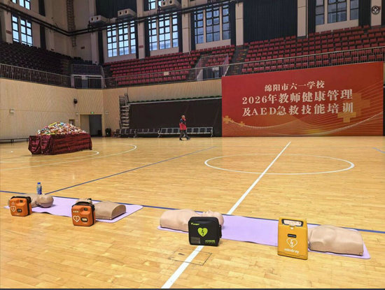 绵阳新闻网讯 为了进一步提升全体教职工的健康管理意识与应急救护能力,筑牢校园安全防线,近日,绵阳市六一学校在涪城体育馆隆重举行了以“守护生命,‘救’在身边”为主题的2026年教师健康管理及AED急救技能专题培训活动。本次培训由该校精心策划,邀请专业急救导师团队授课,旨在让每一位教师都能掌握实用的急救知识与技能,成为校园里的“生命守护者”。