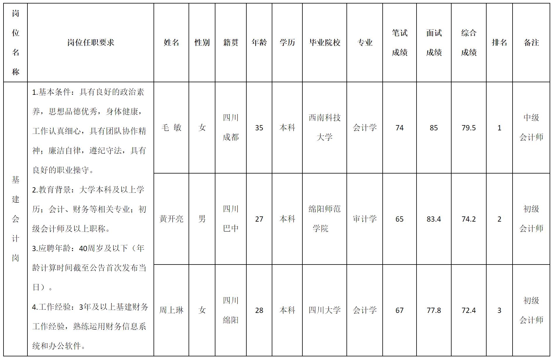 根据富达公司发布的招聘公告及招聘相关规定,经笔试、面试程序,现将成绩予以公示。