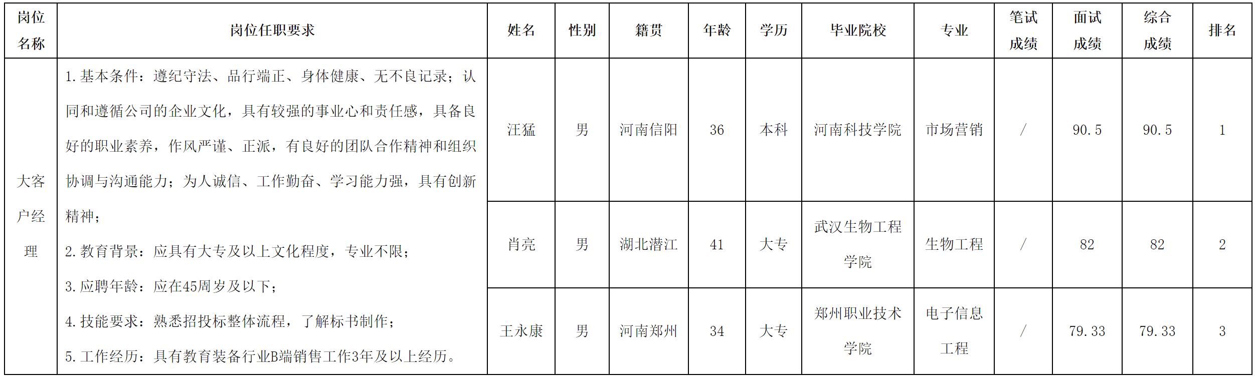根据四川长虹教育科技有限公司发布的招聘公告及招聘相关规定,经面试等程序,现将面试成绩予以公示。