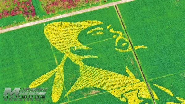 3月10日,记者实地探访江油大康镇星火村看到,在约百亩油菜田与麦田间,油菜花“种”出诗仙李白头像。