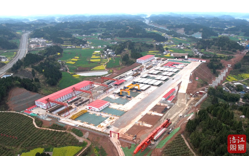 遂宁制梁场位于遂宁市船山区桂花镇,占地面积237亩,主要承担615榀箱梁的预制与架设施工任务。此次架设的首榀箱梁用于陶家湾大桥0-1号墩台之间,其庞大的体积和重量,对提、运、架设备性能及施工精度提出极高要求。
