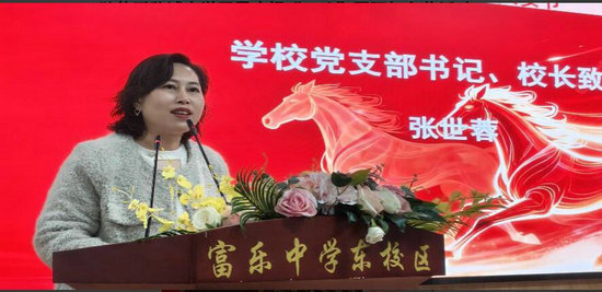 该校党支部书记、校长张世蓉代表学校向全体女教职工致以最诚挚的祝福与崇高的敬意。她指出,女教职工是学校发展的中坚力量,她们的敬业与奉献为校园注入了温暖与力量。鼓励大家在新的征程中平衡工作与生活,以更饱满的热情投身教育事业,学校将一如既往地关心女教职工的身心健康。
