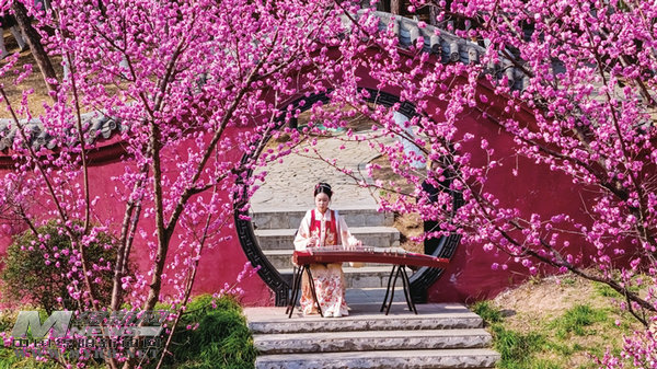 西山公园内,身着汉服的女子花下抚琴,琴音与春风和鸣,奏响了满园生机。 记者 兰建春 摄