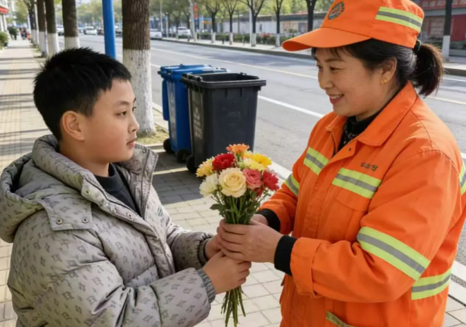 一句“节日快乐!您辛苦了!”,不仅温暖了环卫工人、快递员、医护人员的心,也让孩子们懂得了:每一份职业都值得尊重,每一位女性都在自己的岗位上闪闪发光。