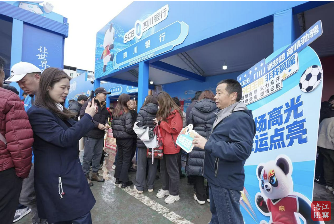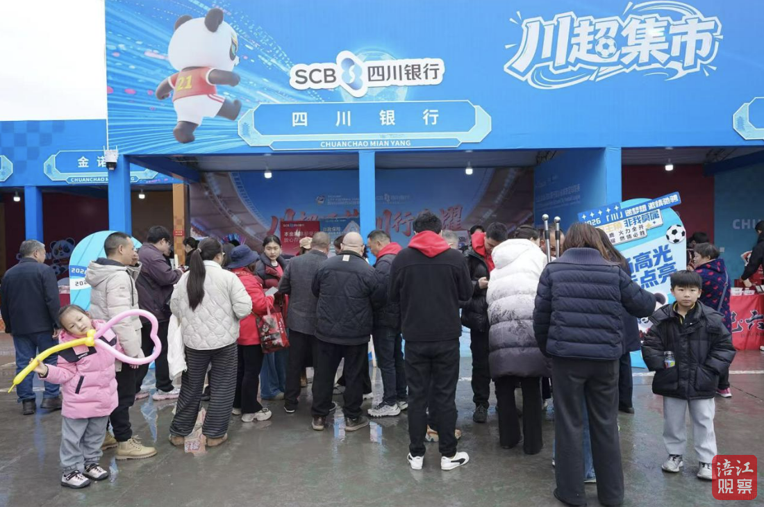 场外“川超集市”内,特色展台与移动银行车交相辉映,成为人气爆棚的“金融打卡地”。