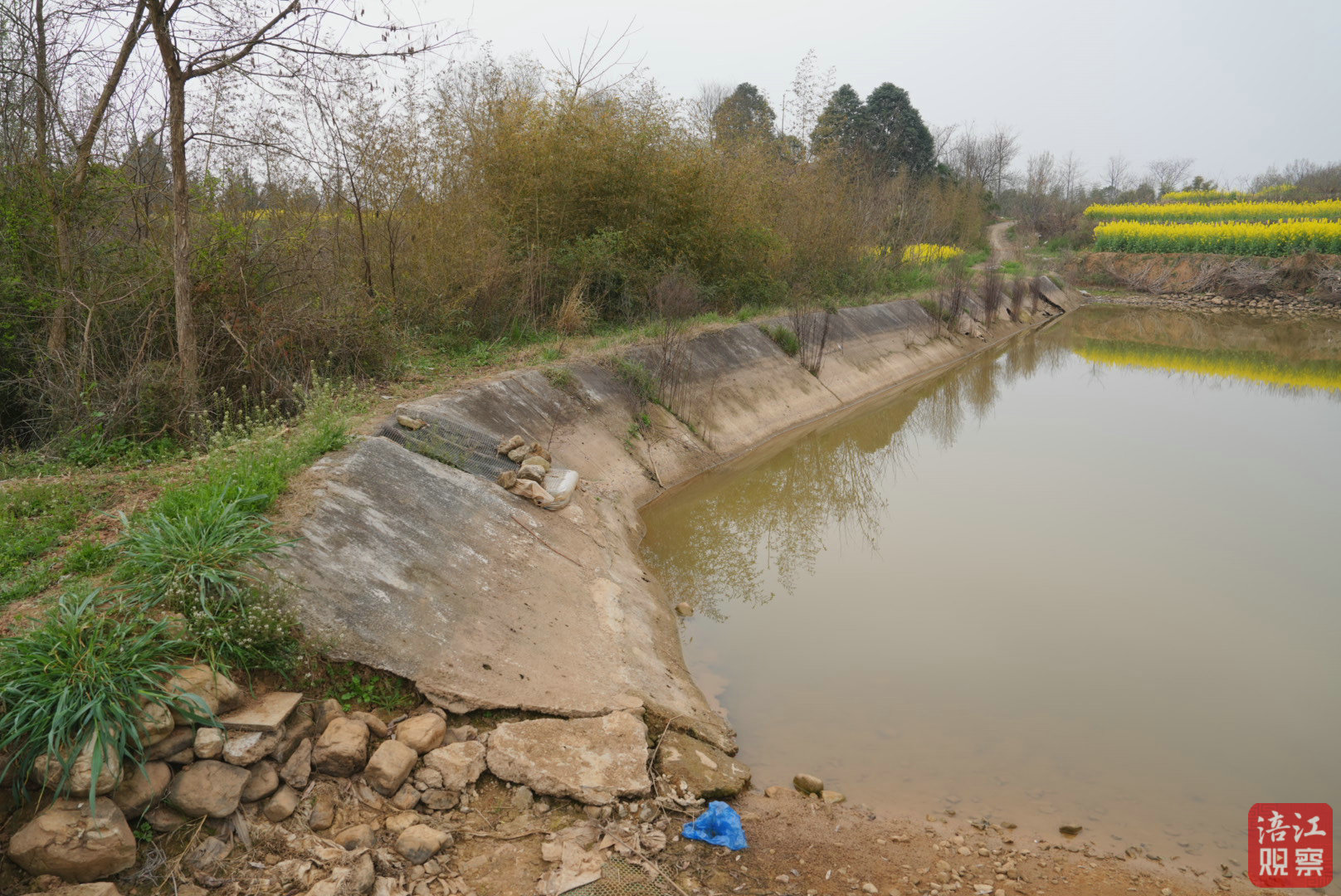 堰塘出水口常年被堵,灌溉沟渠淤塞,与周边土地长期撂荒、灌溉需求低有一定关系。但在坡面硬化时直接封堵出水口,这样的做法背离了堰塘作为农田灌溉水利设施的基本属性,是一种有违原则的短视行为,当时就应该立即纠正,可惜却被无视多年。
