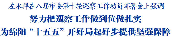 绵阳新闻网讯 3月16日,八届市委第十轮巡察工作动员部署会召开,省委常委、市委书记、市委巡察工作领导小组组长左永祥出席会议并讲话。他强调,要深入学习贯彻习近平总书记关于党的自我革命的重要思想和关于巡视工作的重要论述,认真落实党中央和省委关于巡视巡察工作的部署要求,扛起政治责任、狠抓工作落实,努力把巡察工作做到位做扎实,为绵阳“十五五”开好局、起好步提供坚强保障。