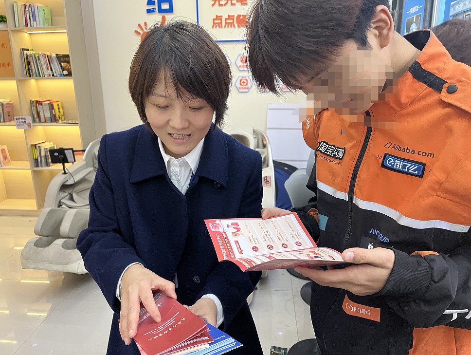 活动现场,工作人员通过发放宣传折页、一对一讲解、现场咨询答疑等多种形式,向外卖骑手们普及了金融消费安全知识。工作人员结合外卖骑手的工作场景和金融需求,重点讲解了防范电信网络诈骗、识别非法金融广告、理性消费借贷、保险保障权益等核心内容,用通俗易懂的语言拆解了“刷单返利”“虚假贷款”“冒充客服退款”等常见诈骗手段,提醒骑手们在日常接单、手机操作过程中提高警惕,不轻易泄露个人信息,不点击陌生链接,守护好自己的“钱袋子”。