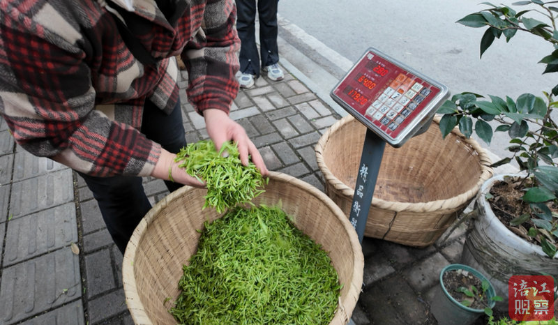 在茶山下的鲜叶收购点,收购商正仔细查验鲜叶的芽形、色泽与鲜嫩度,按质论价、公平交易。不少茶农完成交易,拿着现金或看着手机收款提醒,脸上洋溢着丰收的喜悦。