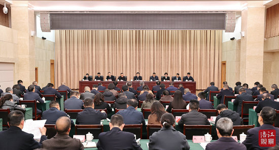 市委副书记、市长江彬主持会议。市人大常委会主任唐浪生,市政协主席李亚莲,市委副书记、政法委书记莫怀学出席会议。