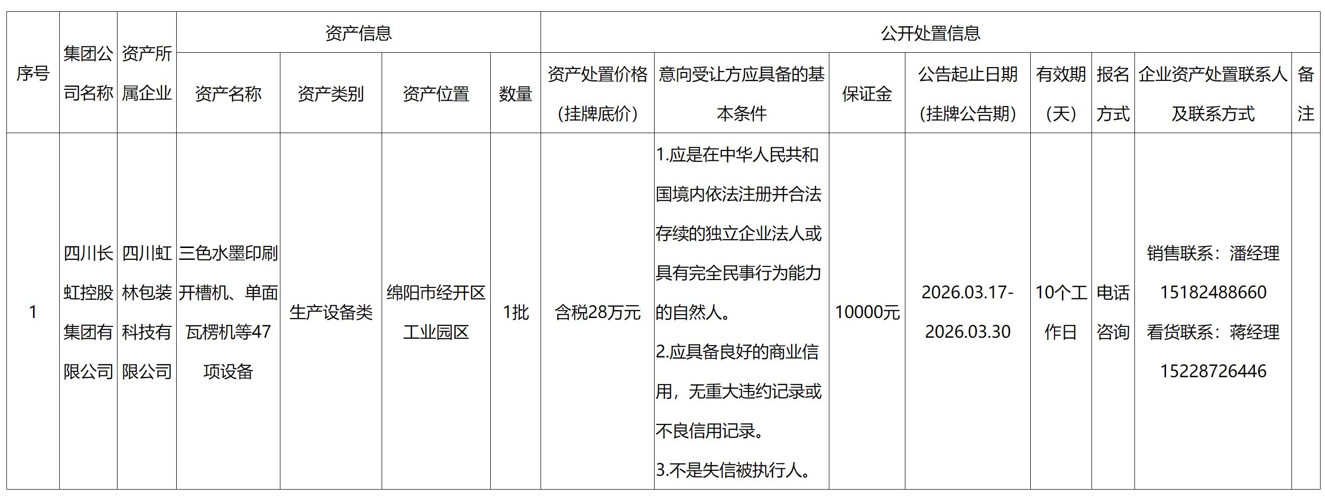 四川虹林包装科技有限公司资产处置公告