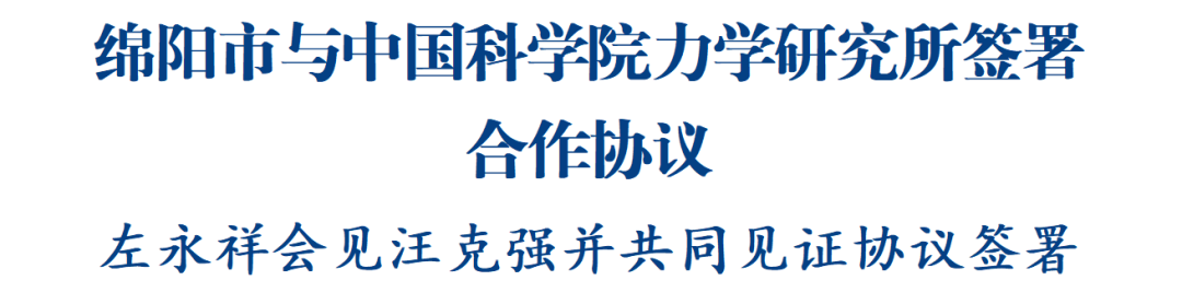 绵阳新闻网讯 3月18日,绵阳市人民政府与中国科学院力学研究所在北京签署合作协议。省委常委、市委书记左永祥会见中国科学院副院长、党组成员汪克强,并共同见证协议签署。中国科学院副秘书长、科技创新发展局局长(兼)文亚,省科学技术厅厅长路松明,中国科学院力学研究所所长黄河激,市委副书记、市长江彬出席并见证协议签署。