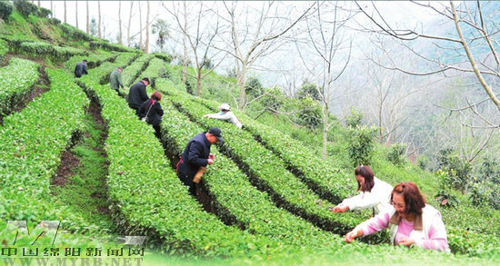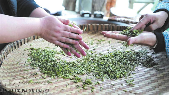 “今年采茶比去年早了五六天哟,趁天气好,多采点嫩芽。”答话间,刘敏双手灵活地在茶树间穿梭,生怕浪费了采茶的时间。