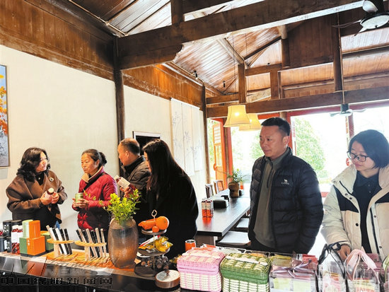 午后,民宿大厅里茶香氤氲。几位游客围坐在原木茶桌旁,捧着刚炒好的春茶,轻啜慢品。“这茶汤清亮,回甘快,香!”来自成都的游客甘女士一边拍照发朋友圈,一边咨询,“这茶能打包带回去吗?我想送朋友。”