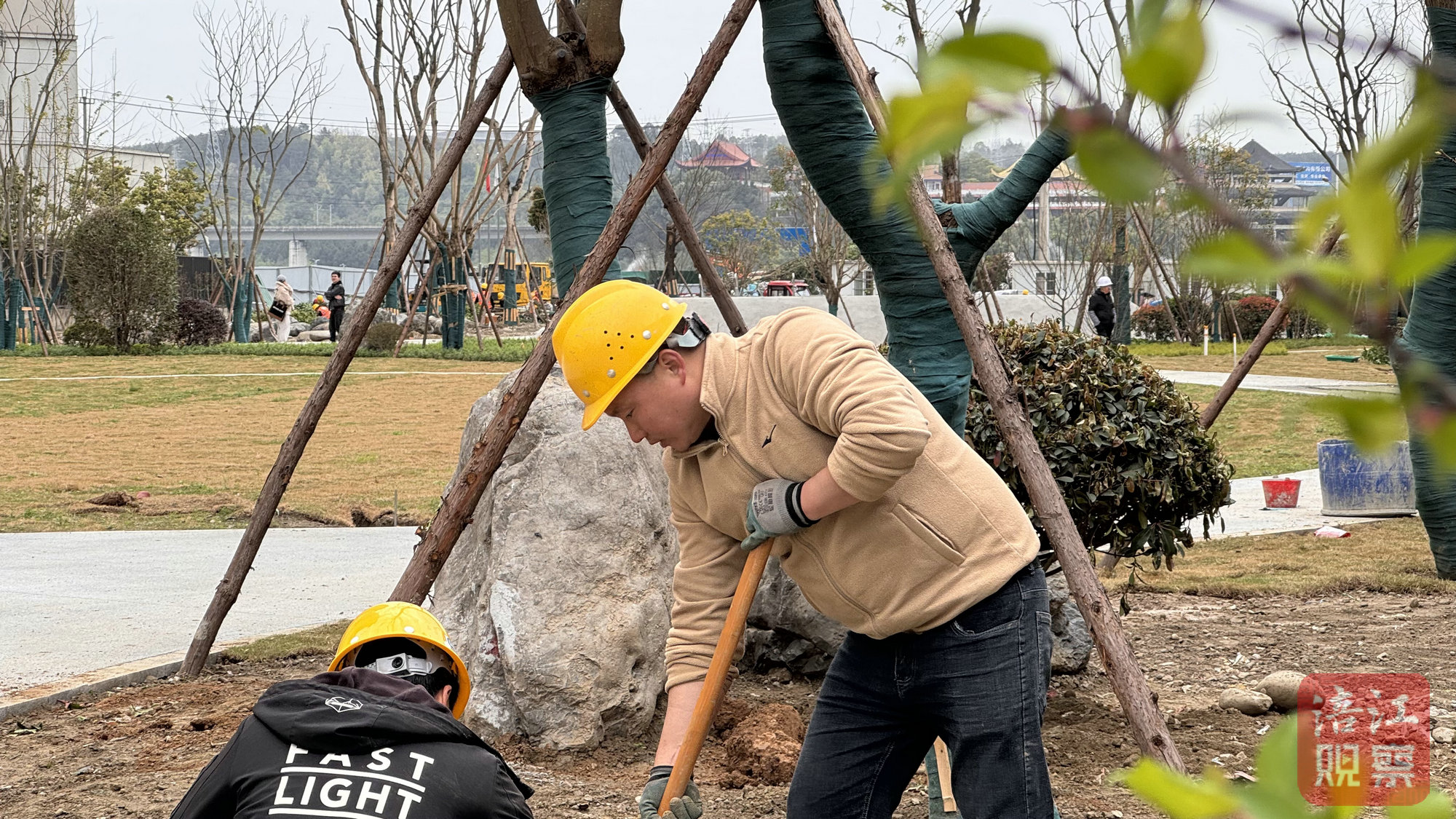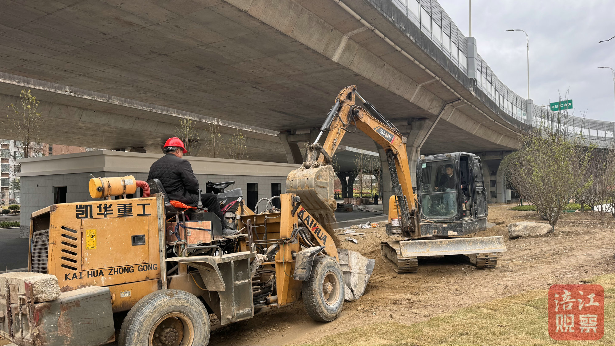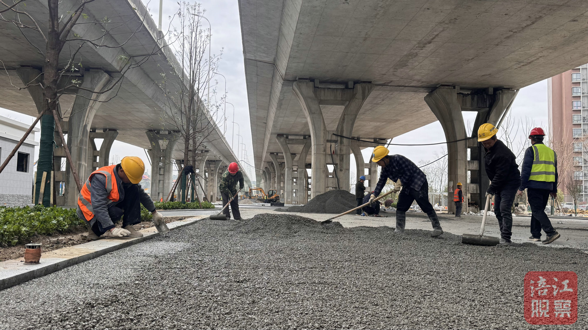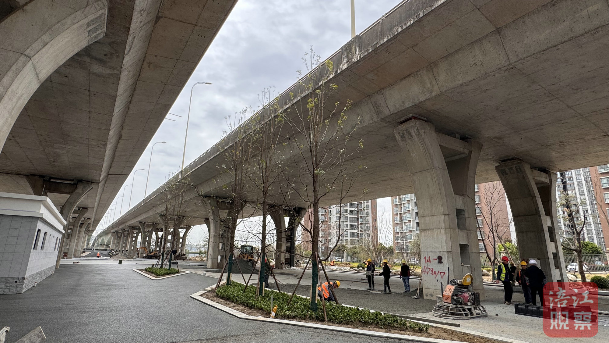 记者在现场看到,目前公园绿植大部分已栽种完毕,工人们正抓紧进行剩余部分的绿化收尾工作。同时,桥下球场、儿童活动区以及道路硬化铺装等工程也在同步推进。