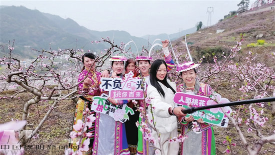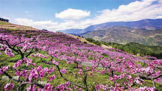 响岩清水村万亩桃花绽放。