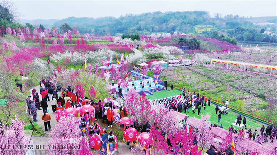3月14日,三台县北坝镇“花神迎春 缘聚水文”桃花文旅消费季启幕,吸引了众多游客畅享春日美好时光。 记者 李春梅 摄