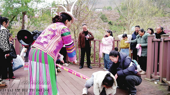 3月15日,平武县响岩镇万亩桃园健行赏春主题活动举行,活动以“文旅+体育”为核心,串联赏花打卡、集章挑战与文旅福利,给游客带来趣味十足的新体验。 记者 任露潇 摄