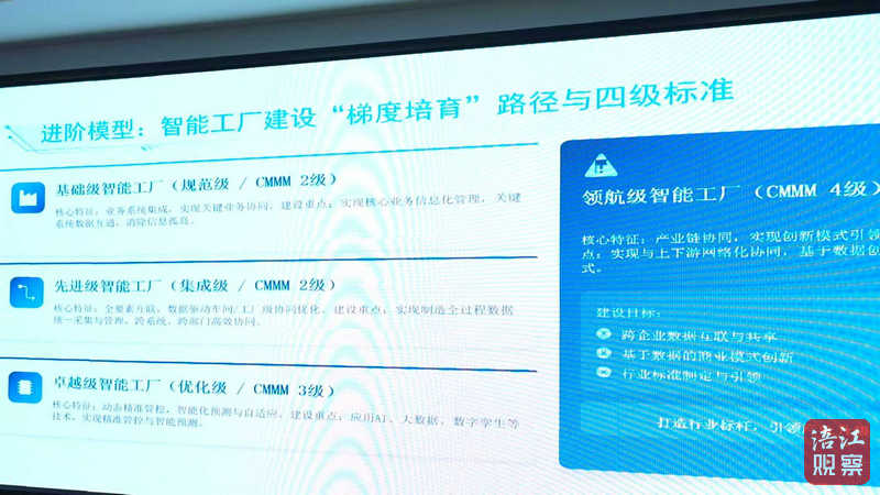 标杆企业分享环节,2025年卓越级、先进级智能工厂代表登台交流。九洲集团介绍以标准化、精益化先行,信息化、自动化、智能化并行,推进“九洲智能制造专项”大规模交付试点,打造高安全、高质量、快交付、低成本的SQDC零缺陷智能化工厂,为参会企业提供可复制经验。