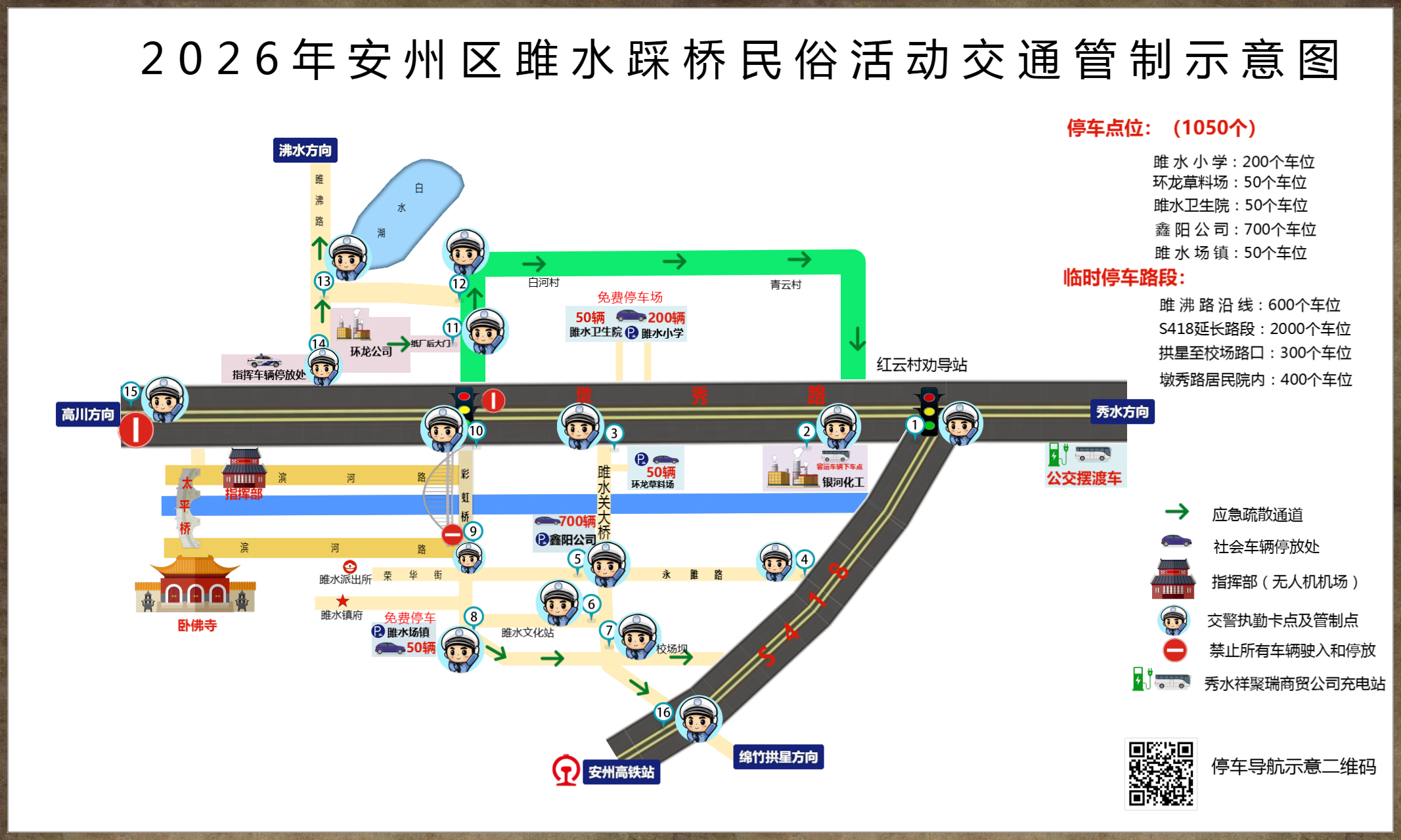前往原沸水镇、白水湖方向的车辆可沿秀沸路向秀水镇方向绕行。