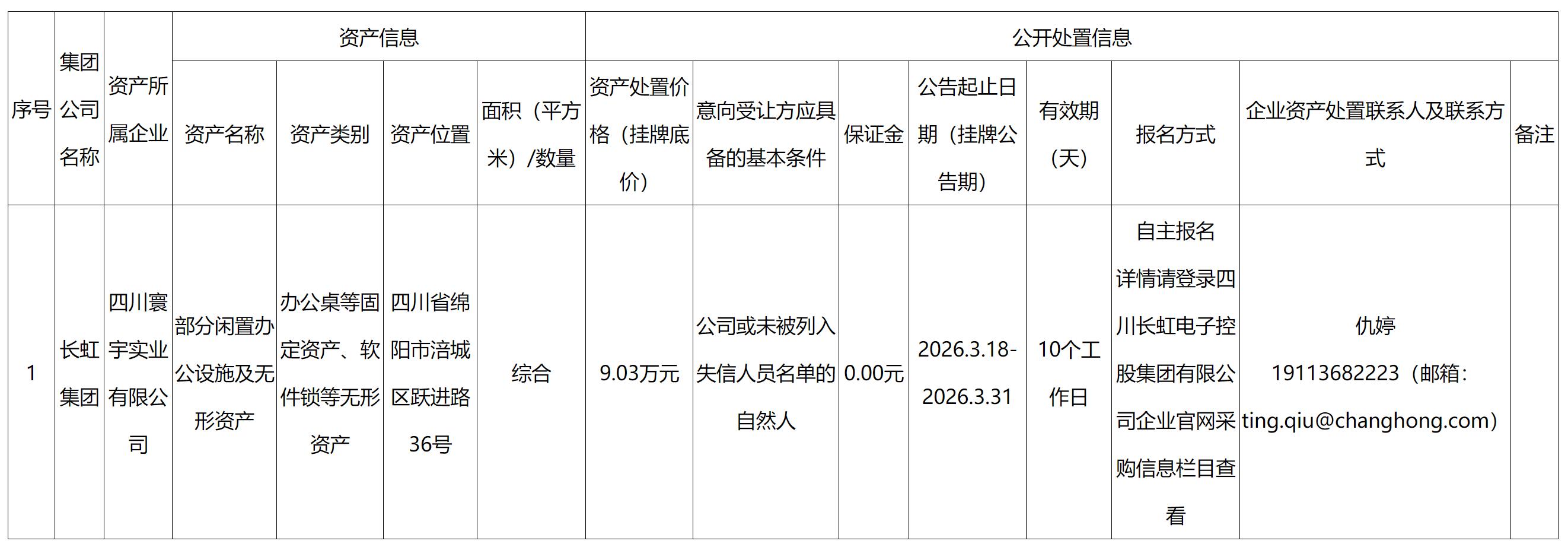 四川寰宇实业有限公司资产处置公告