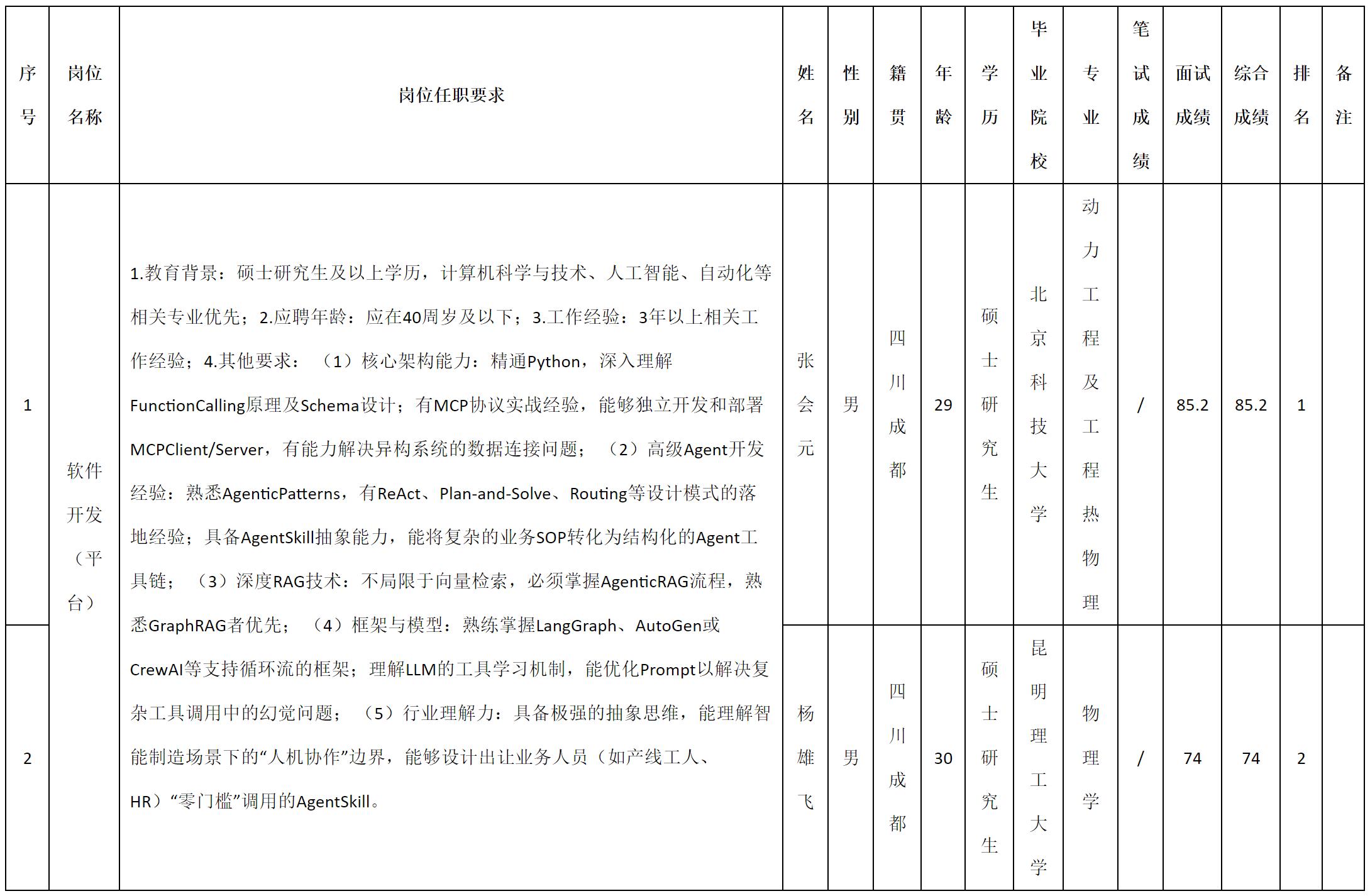 根据四川九州电子科技股份有限公司发布的招聘公告及招聘相关规定,现将测试成绩予以公示。