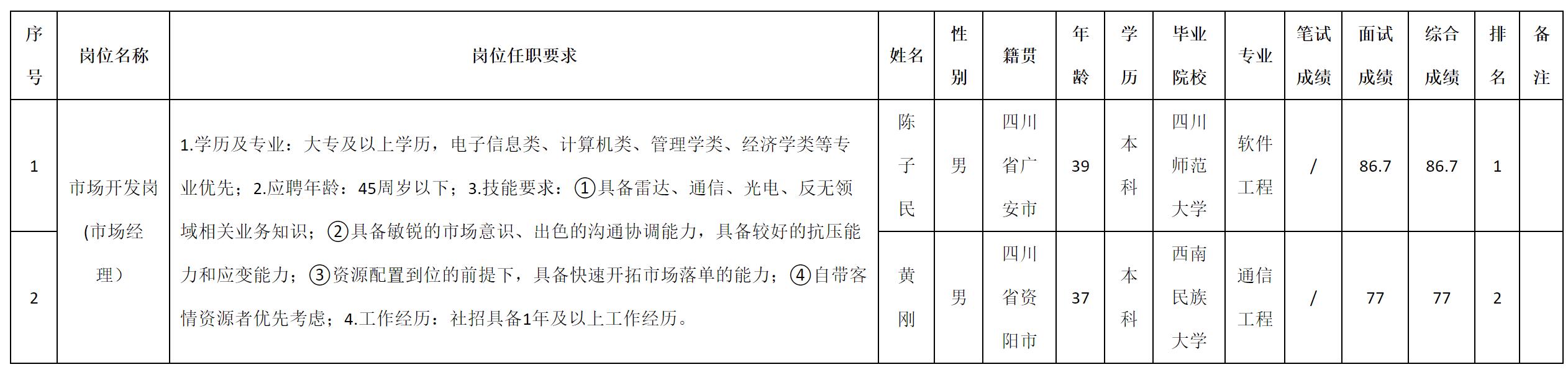 根据四川九洲电器集团有限责任公司发布的招聘公告及招聘相关规定,现将测试成绩予以公示。