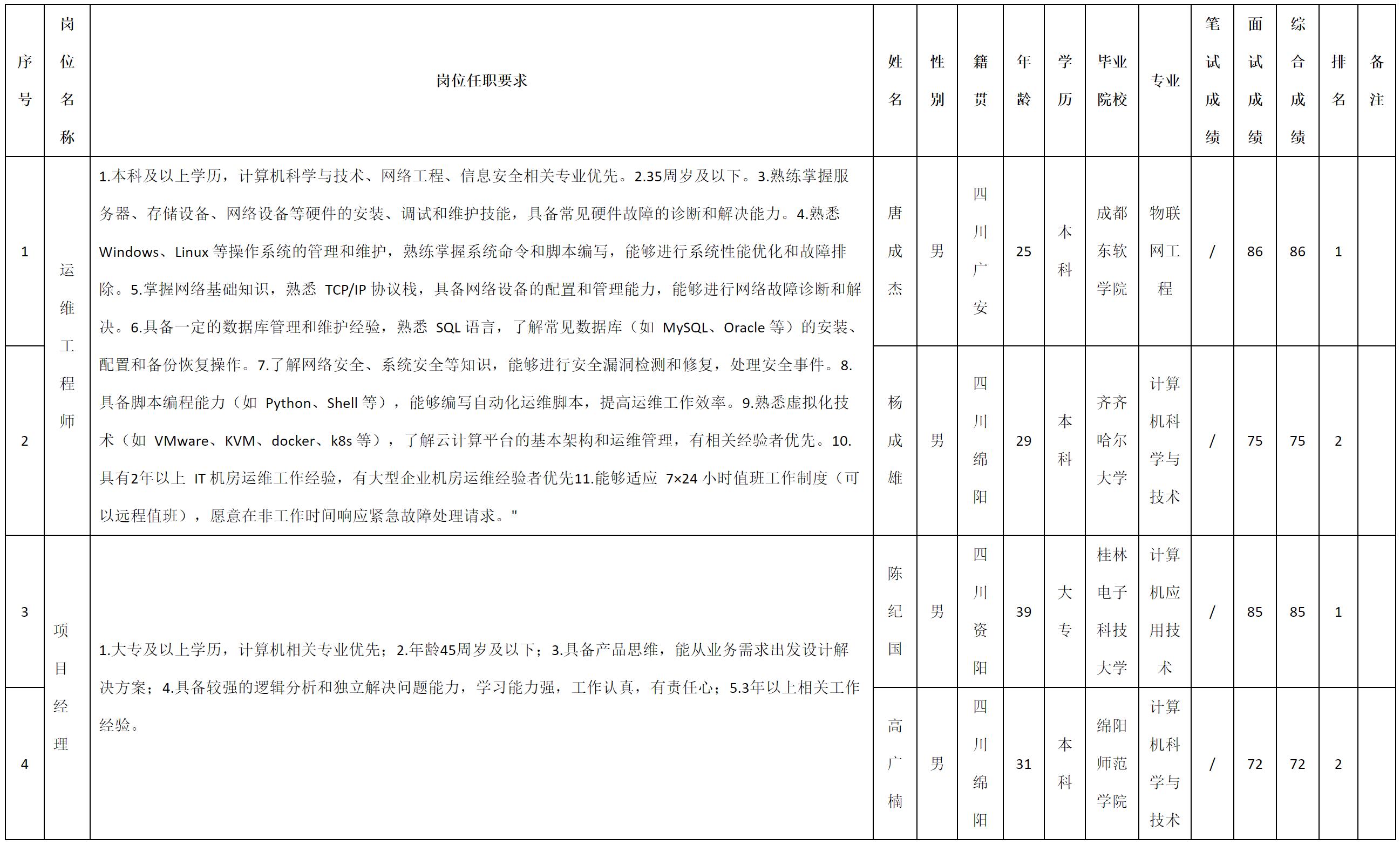 根据四川九洲光电科技股份有限公司发布的招聘公告及招聘相关规定,现将测试成绩予以公示。