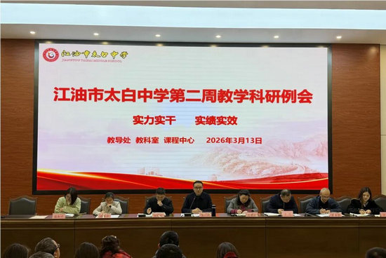 绵阳新闻网讯 2026年3月13日,江油市太白中学召开了以“精准施策优课堂 分层育人提质量”为主题的三月教学科研工作例会。全体教师齐聚一堂,表扬教学先进典型,深入剖析课堂现存问题,系统部署阶段重点工作,为教学提质增效锚定了清晰方向。会议聚焦核心任务,精准施策发力,持续推动学校教育教学工作稳步向前。