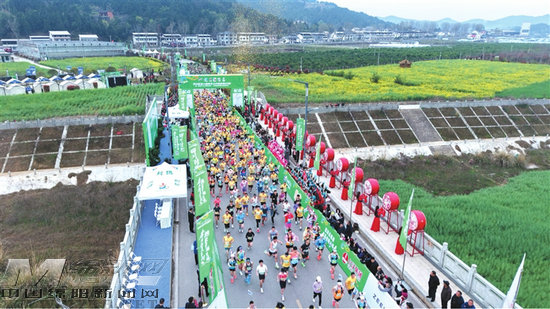绵阳新闻网讯 3月21日8时,随着发令枪响,四川省第六届和美乡村健康跑(村跑)暨“百城千乡万村(社区)”全民健身系列赛盐亭站在盐亭县中华龙凤谷游客中心鸣枪起跑,来自各地的2000余名参赛选手在春日暖阳中踏上乡野赛道,用脚步丈量乡村美景,感受乡村振兴的勃勃生机。