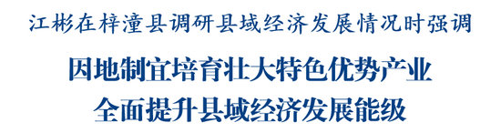 调研中,江彬在听取梓潼县域经济发展情况汇报后指出,梓潼农业基础坚实、文旅资源富集,要锚定全面建设四川丘区经济强县目标,精准发力抓好既定部署落实,在县域经济发展上攻坚突破、成势见效。要做精做优健康食品、生物医药等特色优势产业,围绕产业建圈强链加大项目招引,多措并举盘活闲置资产资源,以资源高效利用赋能产业提质增效。要聚焦现代种业和养殖产业,高标准建设现代农业园区,开展好农产品精深加工产业链三年行动,提高附加值、延长产业链,完善公平分享产业发展收益机制,把农业培育成为县域富民产业。要做实“文旅+”“+文旅”文章,用好用活“两弹一星”红色资源和文昌、蜀道文化遗产,创新开发“吃住行游购娱”文旅产品和项目,更好把资源优势转化为发展胜势。要坚决守牢发展底线红线,扎实抓好安全生产、森林防灭火等工作,有力护航高质量发展。
