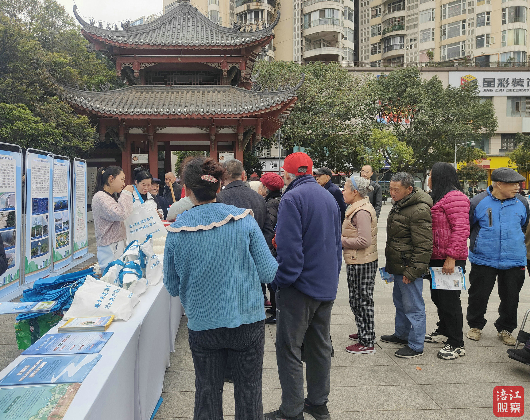 另一边,政策知识宣传单整齐摆放,志愿者一边发放一边为过往群众科普节约用水、河湖保护、水土保持等知识,现场开展水法律法规宣传。