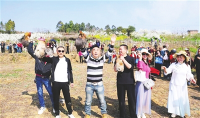 丰谷镇在桃花文旅消费季中,打造集文化、休闲、体育于一体的春日盛会,丰富乡村消费场景。主办方精心策划厨艺大比拼、手工非遗体验等互动项目,抓鸡大战的欢声笑语、田园跑的活力满满、非遗体验的趣味十足,让游客沉浸其中。