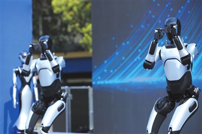 科普体验点上的机器狗吸引了小朋友的目光。 记者 杨方彧 摄