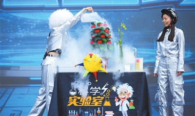工作人员现场演示趣味实验。 记者 杨方彧 摄