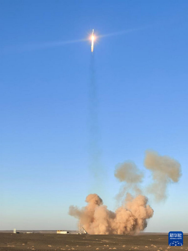 3月30日19时00分,力箭二号遥一运载火箭在东风商业航天创新试验区发射升空,将搭载的新征程01卫星、新征程02卫星和天视卫星01星共3颗卫星顺利送入预定轨道,飞行试验任务取得圆满成功。新华社发(汪江波 摄)