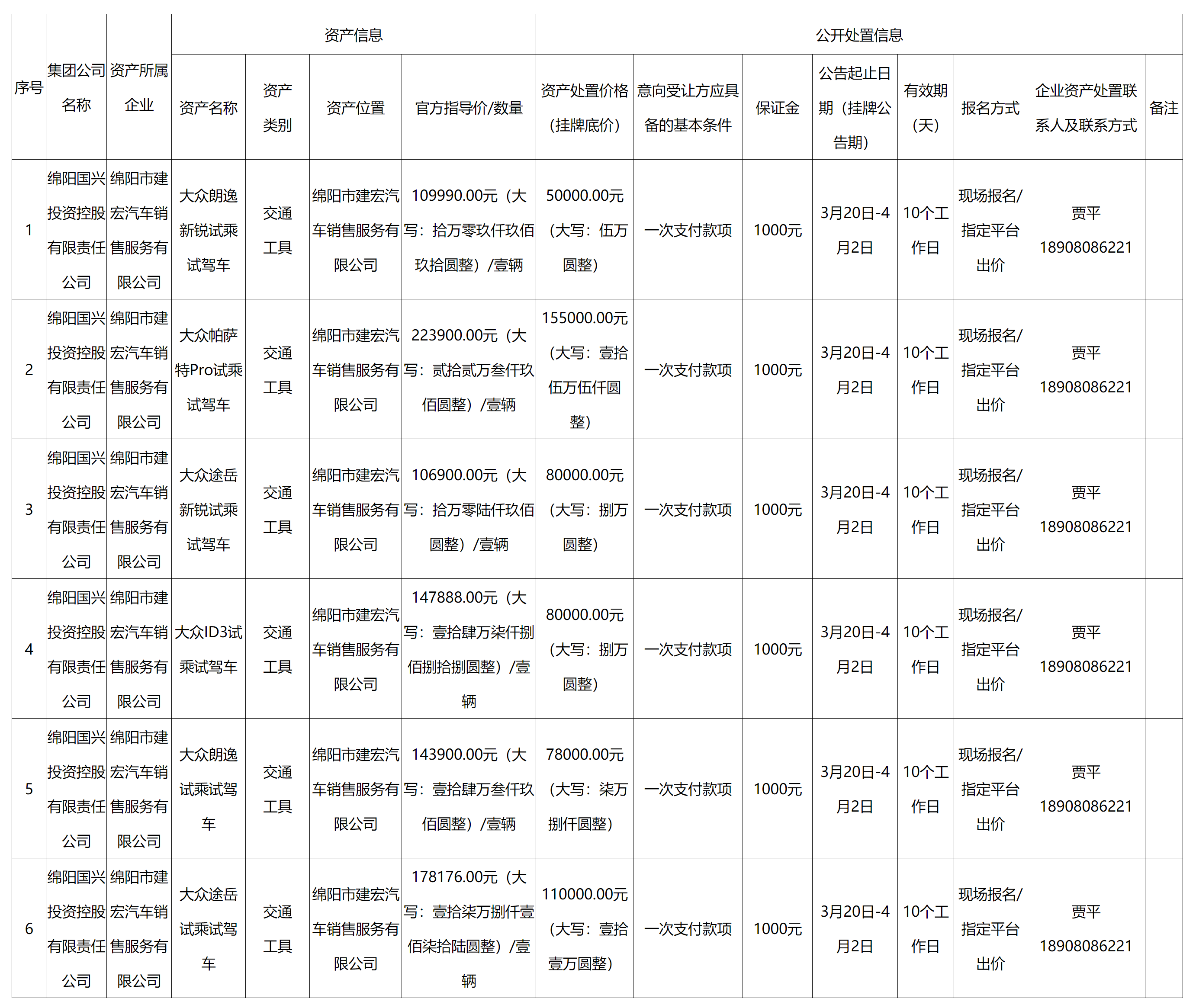 绵阳国兴投资控股有限责任公司资产处置公告