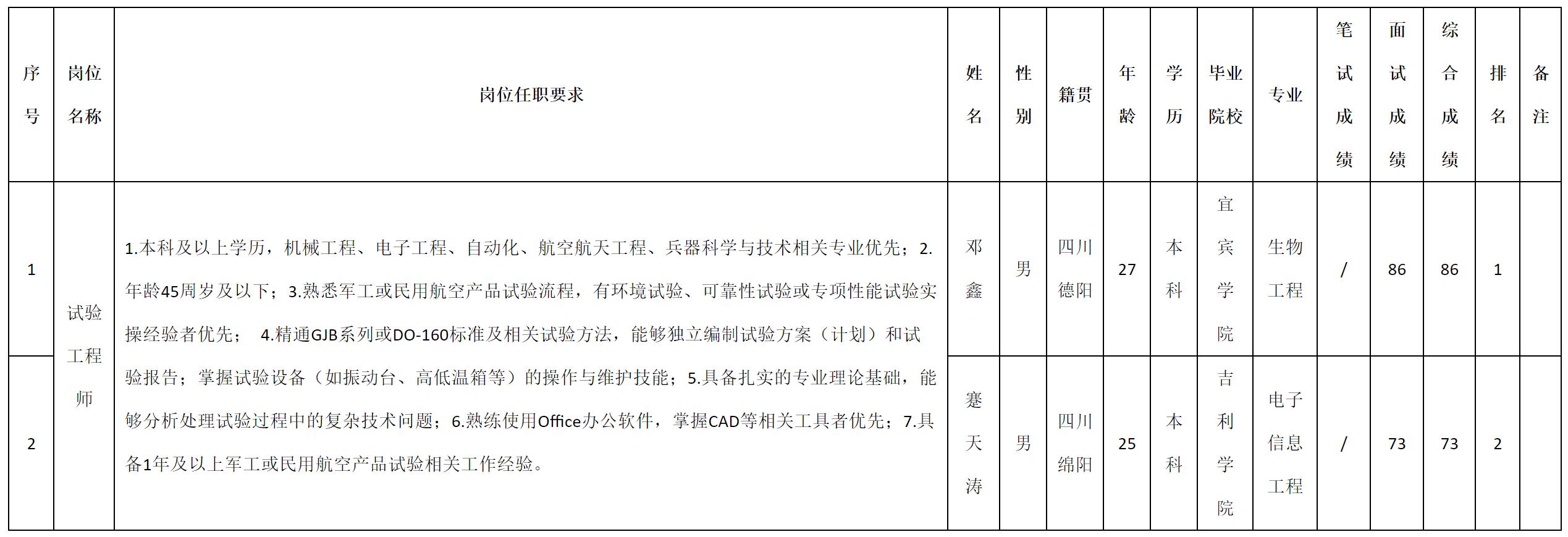 根据四川九洲光电科技股份有限公司发布的招聘公告及招聘相关规定,现将测试成绩予以公示。