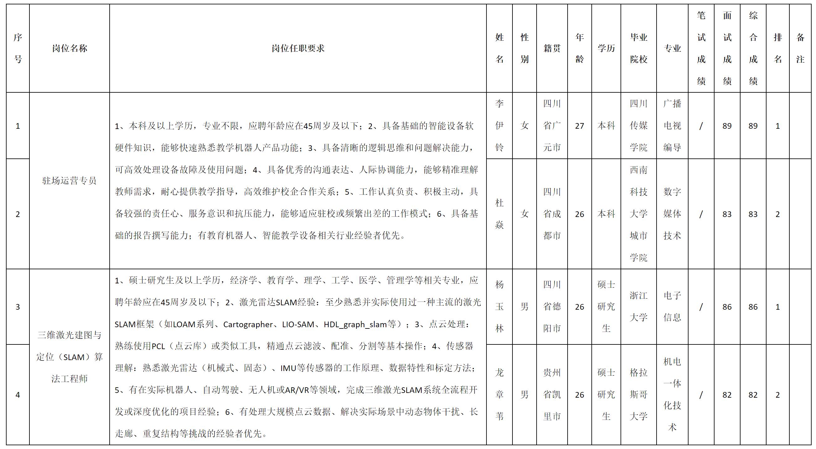 根据四川九洲投资控股集团有限公司软件与数据智能产业发布的招聘公告及招聘相关规定,现将测试成绩予以公示。