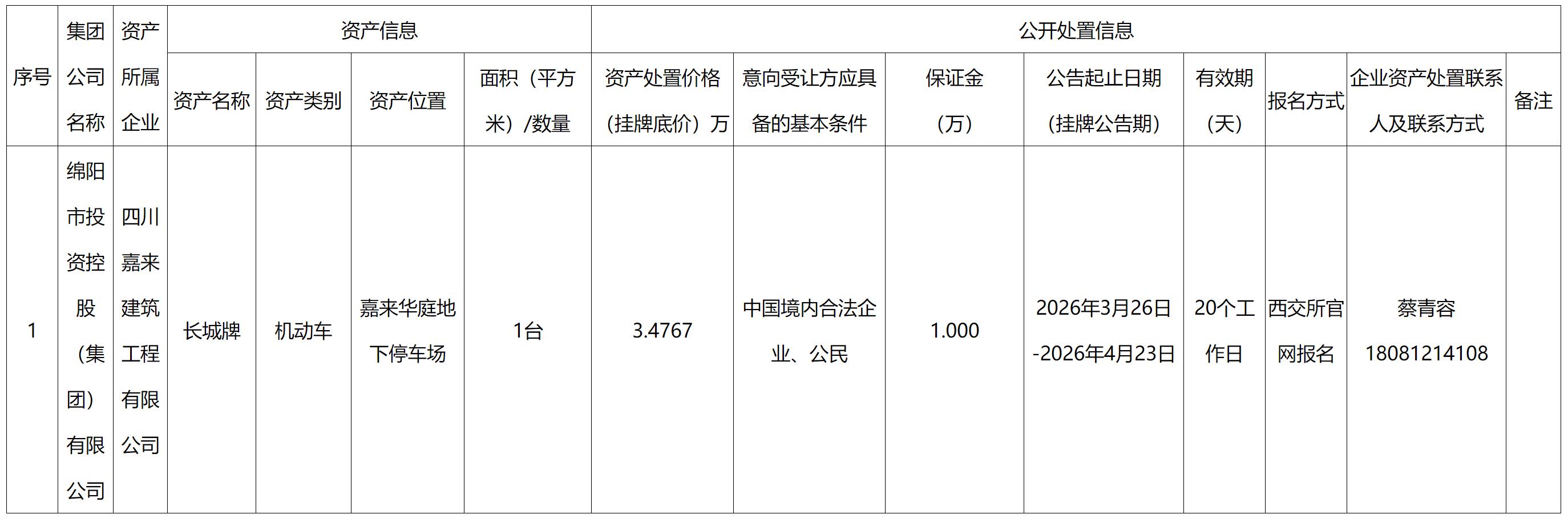 四川嘉来建筑工程有限公司资产处置公告