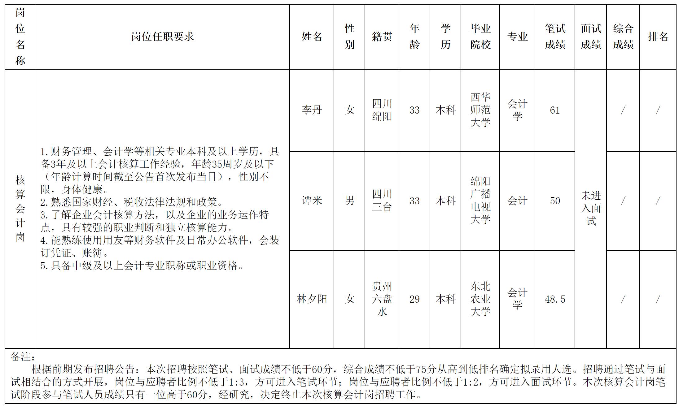 根据四川西津物流有限责任公司发布的招聘公告及招聘相关规定,经笔试,现将笔试成绩予以公示。