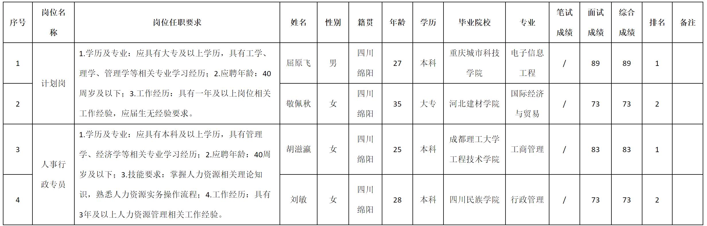 根据四川九华光子通信技术有限公司发布的招聘公告及招聘相关规定,现将测试成绩予以公示。
