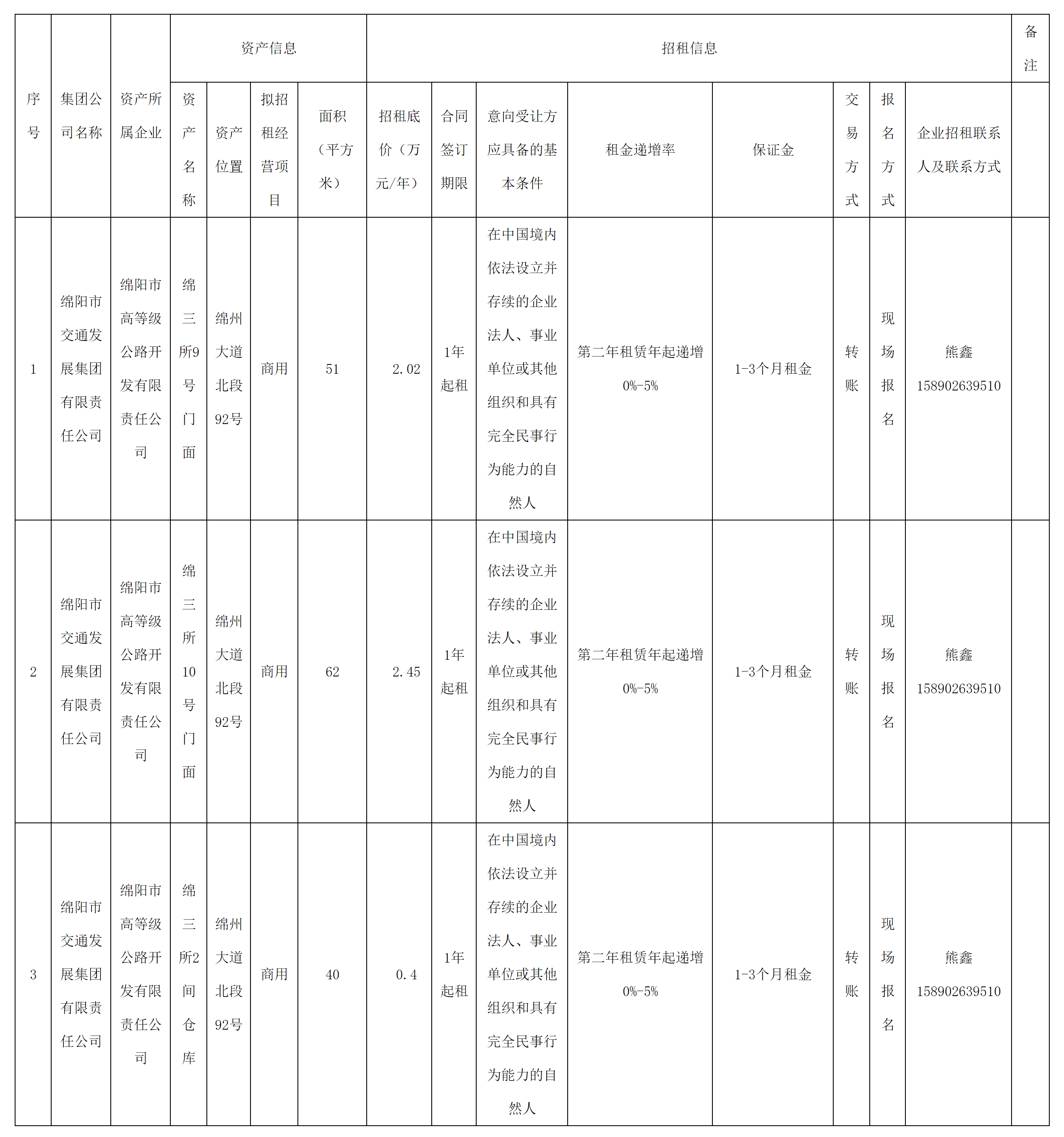 绵阳市高等级公路开发有限责任公司现有部分空置场院对外公开招租,欢迎有意向的单位、个体工商户、自然人报名竞价,现将相关事宜公告如下: