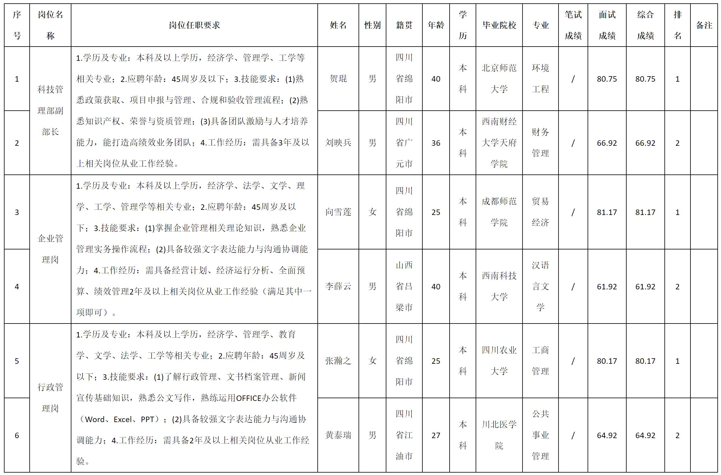 四川九洲芯辰微波科技有限公司关于招聘科技管理部副部长等岗位测试成绩的公示