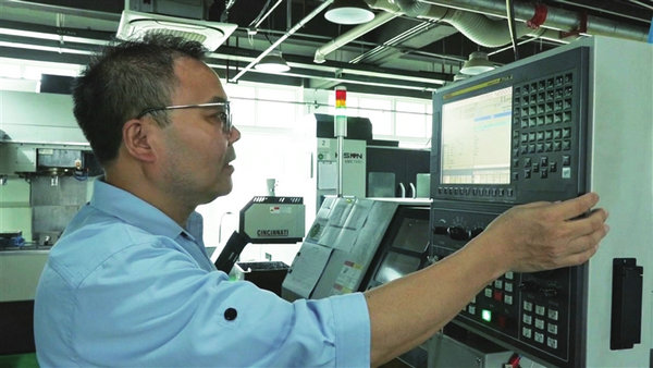 技工师傅操作数字控制系统。