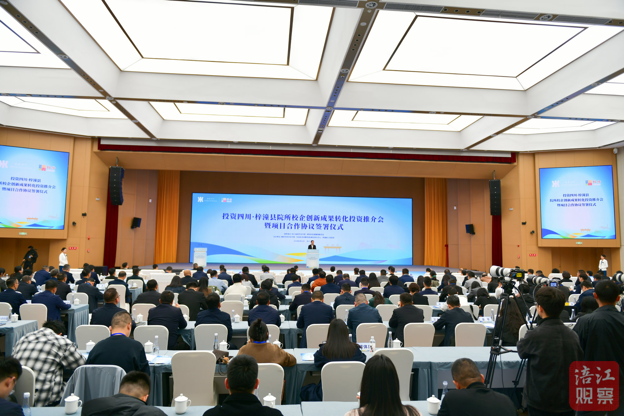 3月31日,投资四川·梓潼县院所校企创新成果转化投资推介会暨项目合作协议签署仪式在梓潼举行。中国科学院院士、浙江大学数学高等研究院教授、博士生导师阮勇斌作主题演讲,省经济合作局副局长刘军,副市长、科技城党工委副书记邓辉出席并致辞。