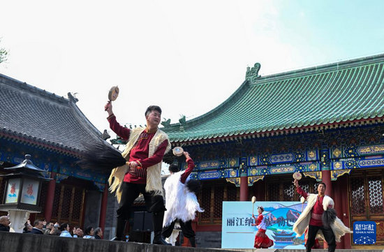 3月30日,演员在开幕式上表演纳西族勒巴舞。