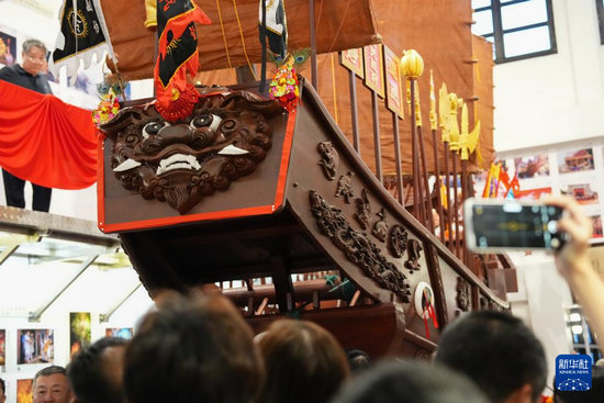 3月29日,在马来西亚马六甲市的马中送王船博物馆,人们参观复刻自1919年马六甲送王船仪式的“王船”。新华社记者 陈泽国 摄