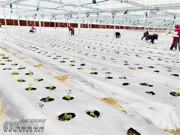 在江油青莲镇云瑶村蔬菜种植基地,大棚内蔬菜苗整齐排列。 记者 陈元松 摄